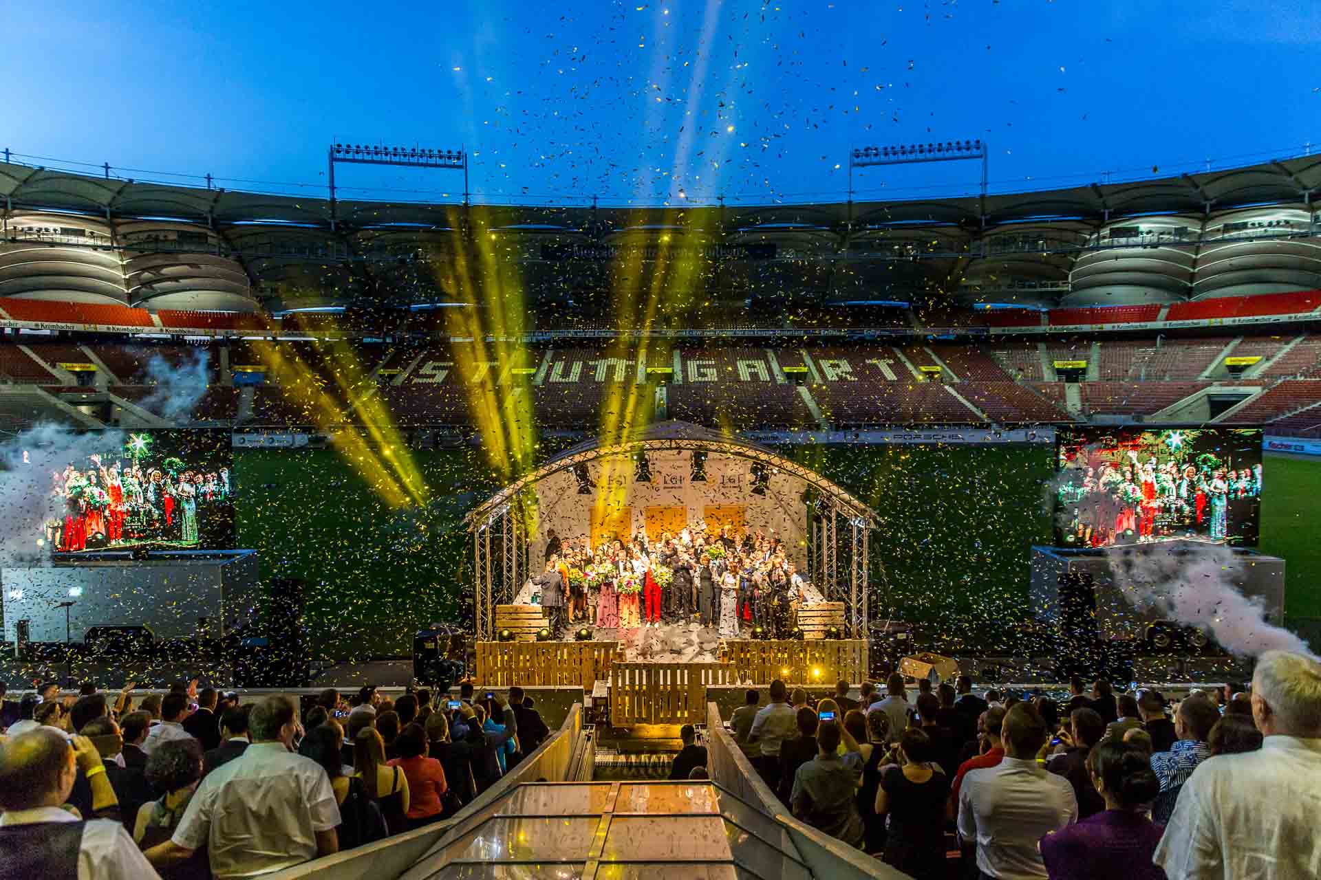 Im Rahmen der Feierlichkeiten anlässlich des 20-jährigen Jubiläums des Logistikdienstleisters LGI konzipierte und organisierten wir einen Gala-Abend für die 300 besten Kunden des Unternehmens. Dazu verwandelten wir eine klassische Lagerhalle des Kunden in eine festliche Eventlocation. Aus Elementen des Alltags des Kunden, wie Paletten und Gitterboxen, wurde eine spannende Eventarchitektur entwickelt und auch das Gala-Programm passte sich dem Kunden an. 5 kulinarische Meister, vom Deutschen Grillmeister bis zum Kapitän der Deutschen Bäcker-Nationalmannschaft, stellten einen inhaltlichen Qualitätsbezug zu unserem Kunden her. Eine kurzweilige Percussion auf Lagerware des Unternehmen sorgte für Stimmung und ein hochspannender Balance-Akt sorgte für Gänsehaut im Publikum.